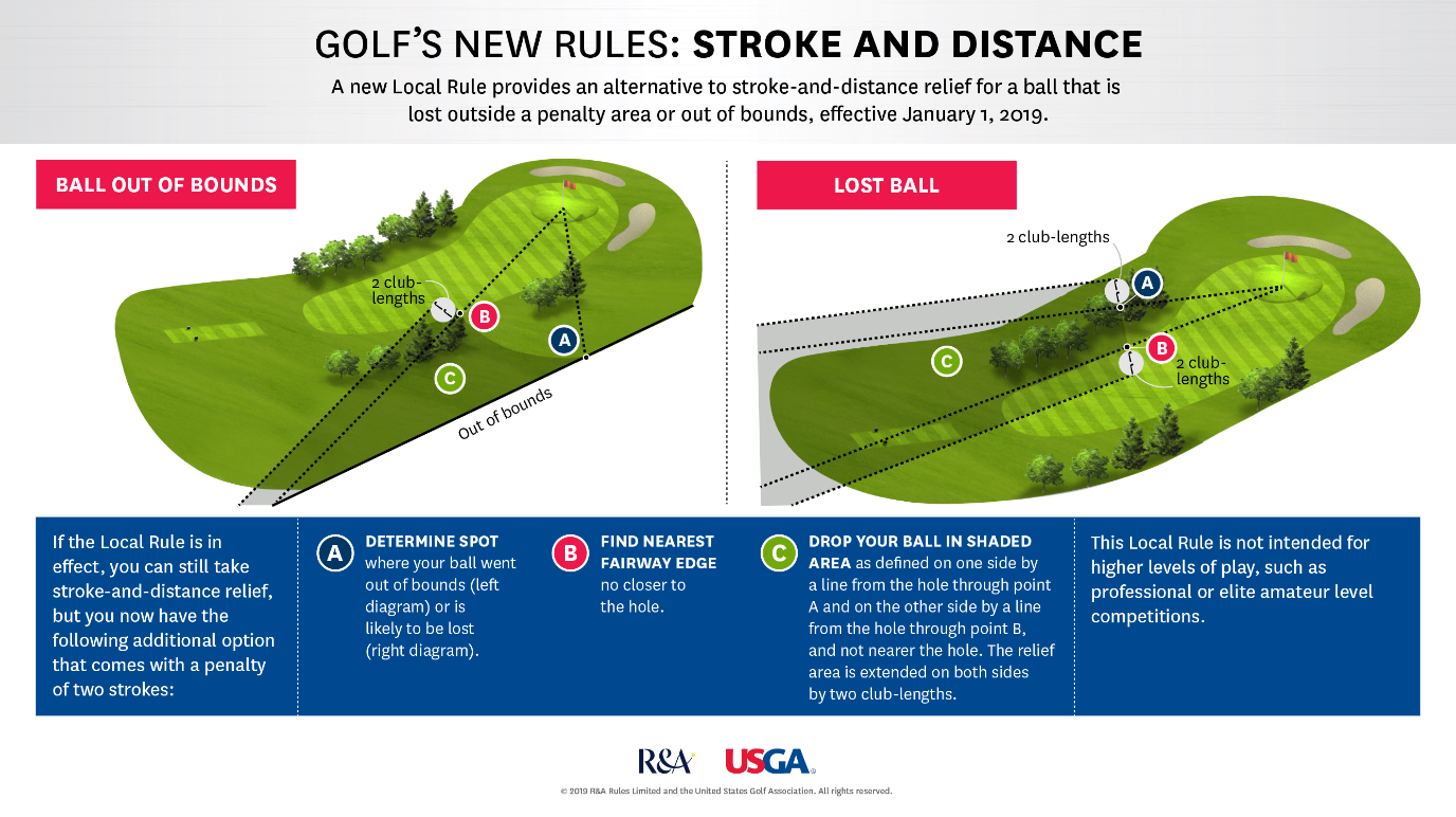Three things instantly came to mind when I saw this new Local Rule option for Stroke & Distance relief. From a playing perspective, let's be honest, most if not all of us were already operating under this rule in most cases. When was the last time you were out playing on a nice Sunday morning with your spouse or your buddies and went back to your previous location to re-play a shot that was lost or out of bounds. My guess is it has been a very, very, very long time.